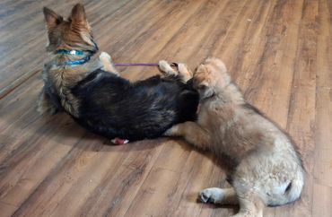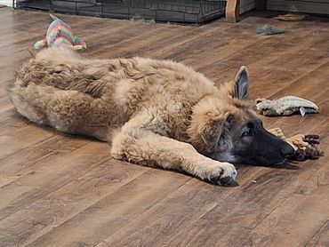 I rolled the dice and said I'd keep whoever didn't get an application. Seems we saved the best for last-- Pick of the Litter on the evaluation!! Summit stole my heart with a more difficult arrival into the world than his siblings, immediately escaped his confines to start exploring, and has been a blast from the beginning. I planned on a smooth girl, and have a plush boy. Sometimes, we receive who we need, not who we think we want.